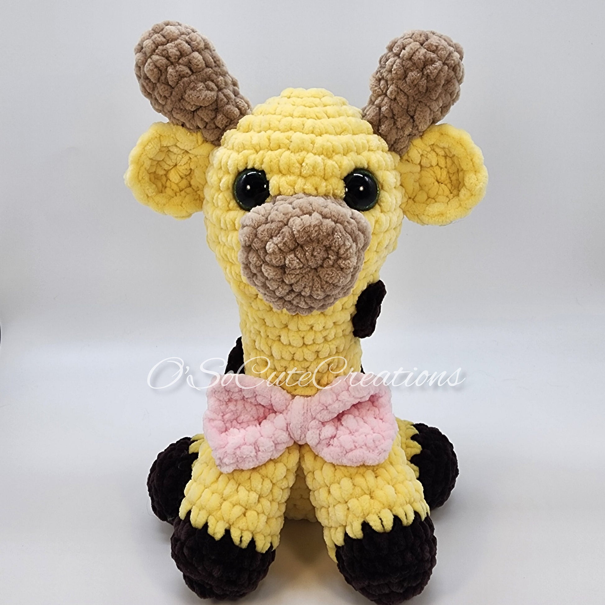 Crochet Giraffe Plushie with Pink Bow